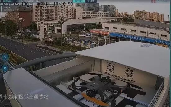 在新區(qū)有這樣一座特殊的“機場”——它坐落在園興西街的路燈桿上,外形像一個“四方盒子”?!昂凶印贝蜷_,停放在里面的無人機即可啟動騰空,按設(shè)定航線執(zhí)行巡檢任務(wù)。